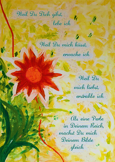 Dieses Bild ist ein von mir gemaltes Leinwandbild. Der Text basiert auf einem Gedicht, das ich 2015 schrieb und 2021 weiterverarbeitete zu einem Song: Der Traum