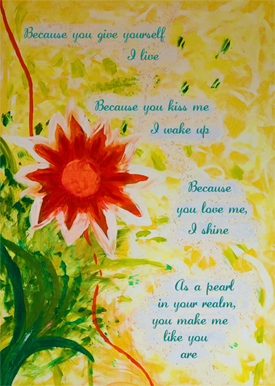Dieses Bild ist ein von mir gemaltes Leinwandbild. Der Text basiert auf einem Gedicht, das ich 2015 schrieb und 2021 weiterverarbeitete zu einem Song: Der Traum