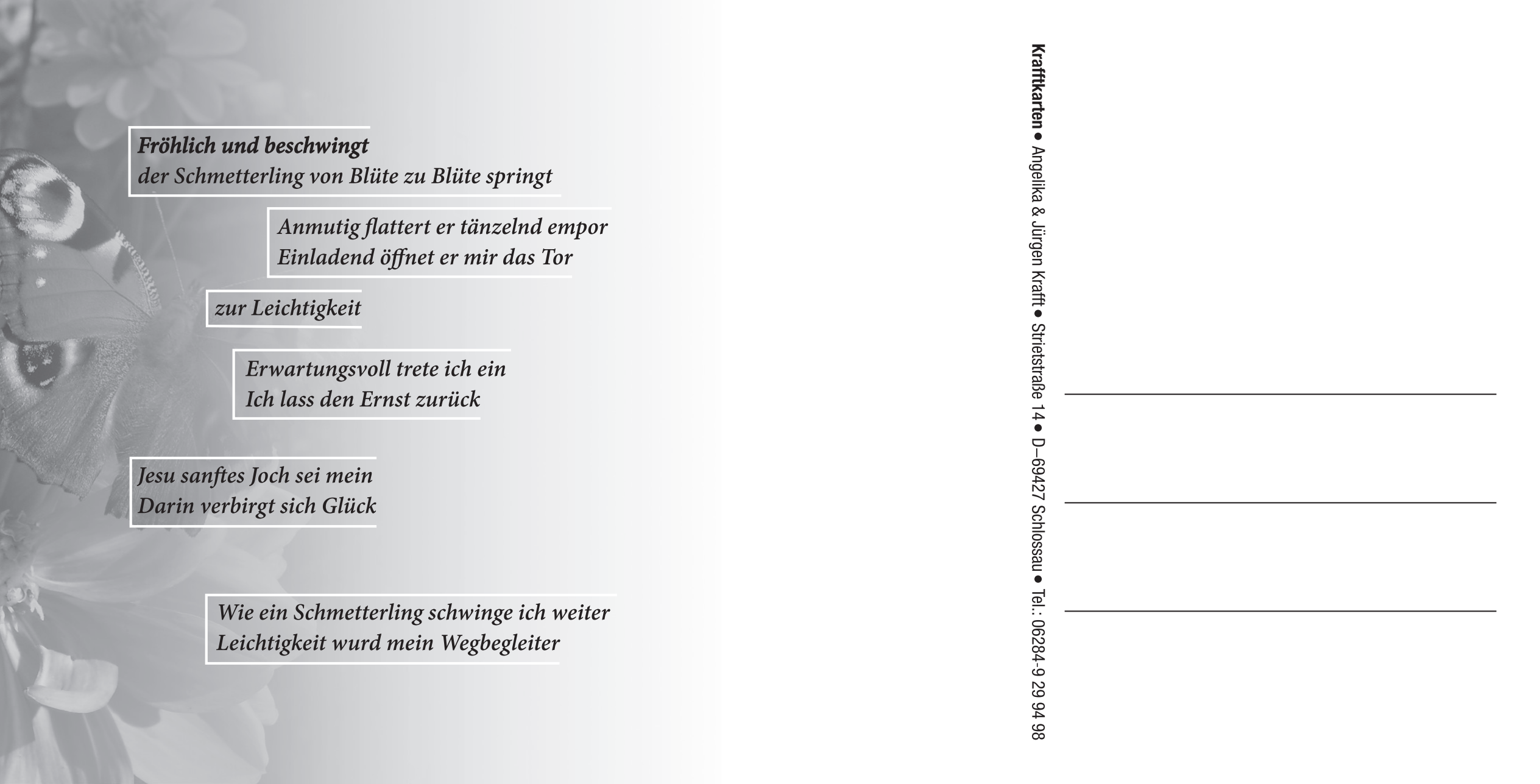 Postkarte mit Frontmotiv und Gedicht auf der Rückseite.